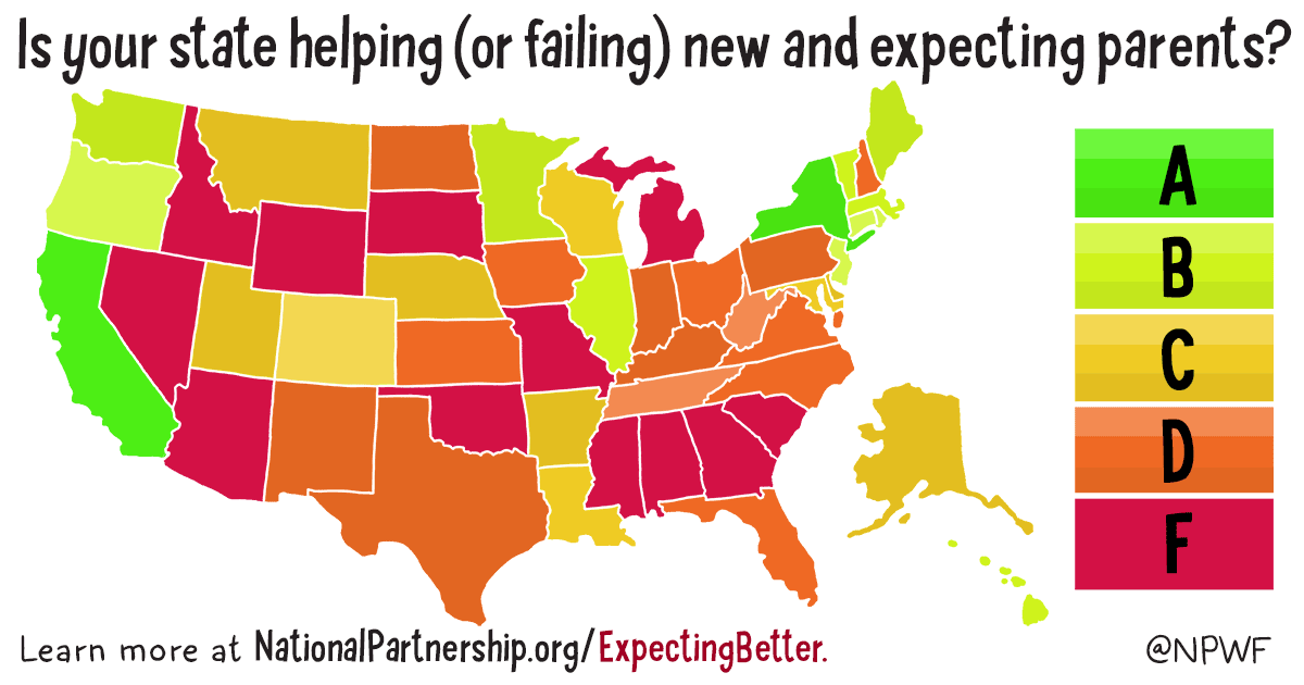 Yet, our nation’s laws are insufficient and do not provide the support expecting and new parents need upon the birth of a child. Most states have not passed laws that improve upon inadequate federal law by providing paid family and medical leave, paid sick days and strong pregnancy accommodations. Pregnant and parenting women in states without these and other key policies lose crucial income when, for example: they are forced out of their jobs because they need a reasonable pregnancy accommodation to continue working; they need paid family or medical leave for bed rest during pregnancy, or in the days or weeks after giving birth to a child or if their co-parents do not have paid family and medical leave; or they lose their jobs because they do not even have access to job-protected unpaid time away from work.